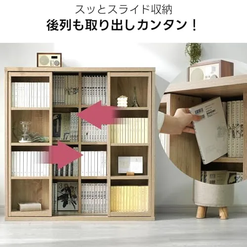 ワイエムワールド 本棚 棚 スライド式 大容量 幅90 奥行き34 高さ92 奥深タイプ コミック収納 木製 オーク kss-0008br-12/