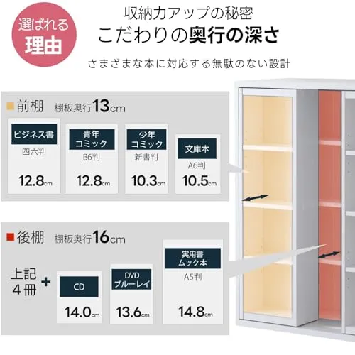 商品仕様奥深仕様で、青年コミックやCD・DVDも収納可能