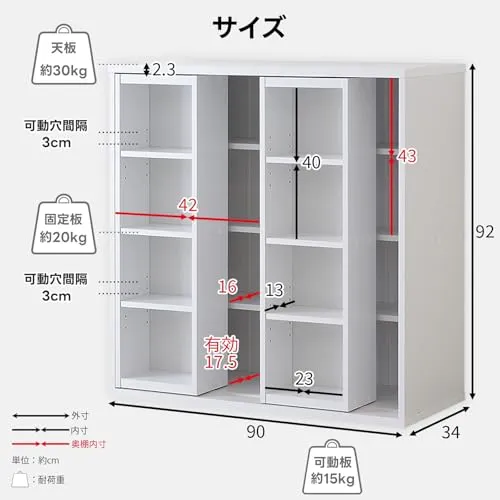耐荷重天板:約30 固定板:約20 可動板:15