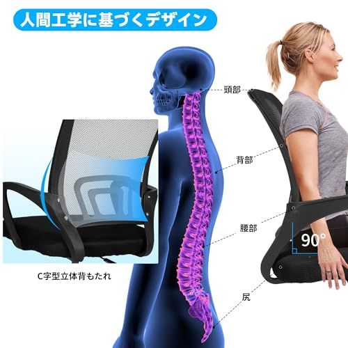 【人間工学に基づいた設計】ユニークな構造は、「長時間座っていても疲れにくい、賢いデザインのオフィスチェア」を目指しており、人間の背中のカーブに合わせた形状、腰への負担を軽減し、健康的な座り姿勢をもたらすデザインとなっています。