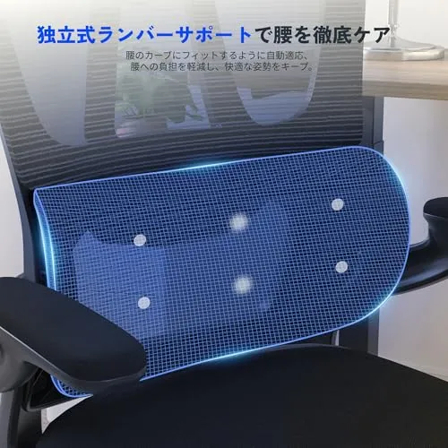 【腰に優しい独立式ランバーサポート】このデスクチェアは、独自のランバーサポートを搭載し、腰のカーブにフィットするように自動適応。長時間のデスクワークでも腰への負担を軽減し、快適な姿勢をキープします。さらに、背面の三角形フレームデザインは、スタイリッシュでモダンな見た目だけでなく、高い安定性を実現。オフィスや自宅のインテリアにも映えるデザインです。