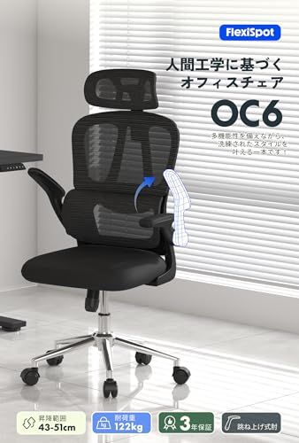 FLEXISPOT オフィスチェア デスクチェア OC6 人間工学 メッシュチェア 独立型ランバーサポート ロッキング調節 跳び上げ式アームレスト 2Dヘッドレスト 在宅勤務 会議室 オフィス用 (OC6, ブラック)/