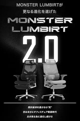 EastForce 日本ブランド MONSTER LUMBIRT2.0(モンスターランバート) クッション座面 360度アームレスト 3ゾーンランバーサポート搭載 リクライニング 人間工学 オフィスチェア デスクチェア 椅子 ブラック/