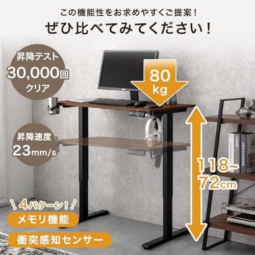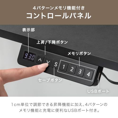 タンスのゲン 昇降デスク 電動 幅100? メモリ機能 静音昇降 USB付き モニターアーム対応 パソコンデスク 昇降式デスク ゲーミングデスク PCデスク 45400146(110921)/