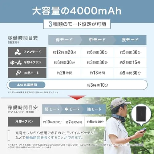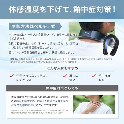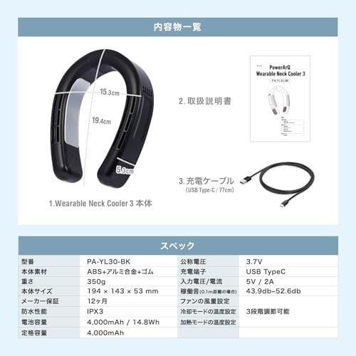 新品 PowerArQ ネッククーラー 冷却プレート【ペルチェ/充電式 USB Type-C/冷却 ファン モード/加熱モード】コンパクト 首掛け扇風機 ネックファン Wearable Neck Cooler3 パワーアーク