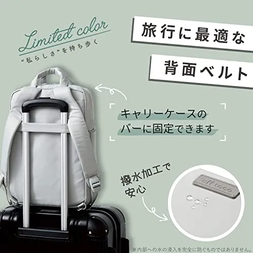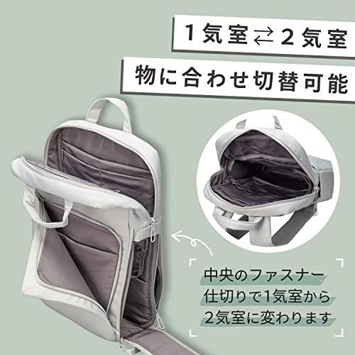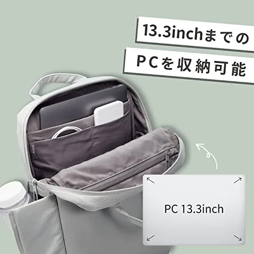 【商品に関するお問い合わせ】 エレコム総合インフォメーションセンター TEL. 0570-084-465 FAX. 0570-050-012 受付時間 / 10:00~19:00 年中無休 休日に持って出かけたくなる“off tocoバックパックのリミテッドカラーモデルです。 少しくすませたやわらかな色合いの表生地と、爽やかなパステルカラーの内生地を採用したバイカラーデザインです。表は風合いのあるシワ加工生地を採用しています。 ※生地特性により個々で表情が異なります。 背面にショルダー収納ポケットがあり、ショルダーベルトを収納し、ハンドバッグとしても持ち歩けます。 13.3インチまでのパソコンを独立して収納可能です。 中央のファスナー式仕切りを外すことで、二気室バッグから一気室バッグへ切り替えられる二気室貫通構造です。 上部空間には小物を仕分けて収納するのに便利な収納ポケットとファスナーポケットが付いています。 右側面収納口には、簡単に開閉できるハンドル式ダブルファスナーと、音を立てずスマートに開閉できるマグネットフラップを採用しています。 右側面の収納スペースには、着替えやポーチなどを収納可能です。 左側面の収納スペースには、折りたたみ傘やペットボトルを独立して収納可能です。 最後までご確認頂き誠にありがとうございました。 上記をご確認頂き、ご購入いただけましたら幸いです。 何かご不明な点がございましたらお気軽にメッセージからお問い合わせ下さい。