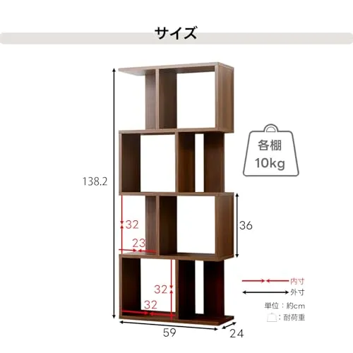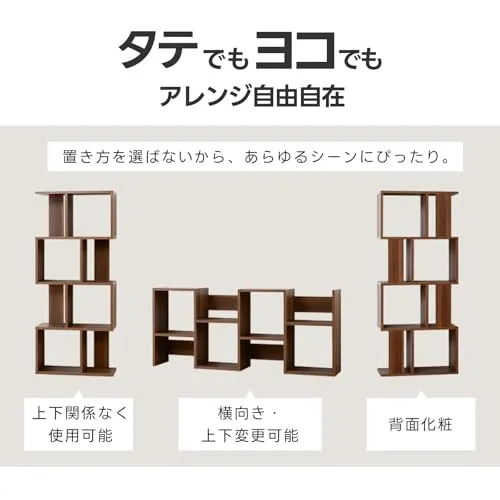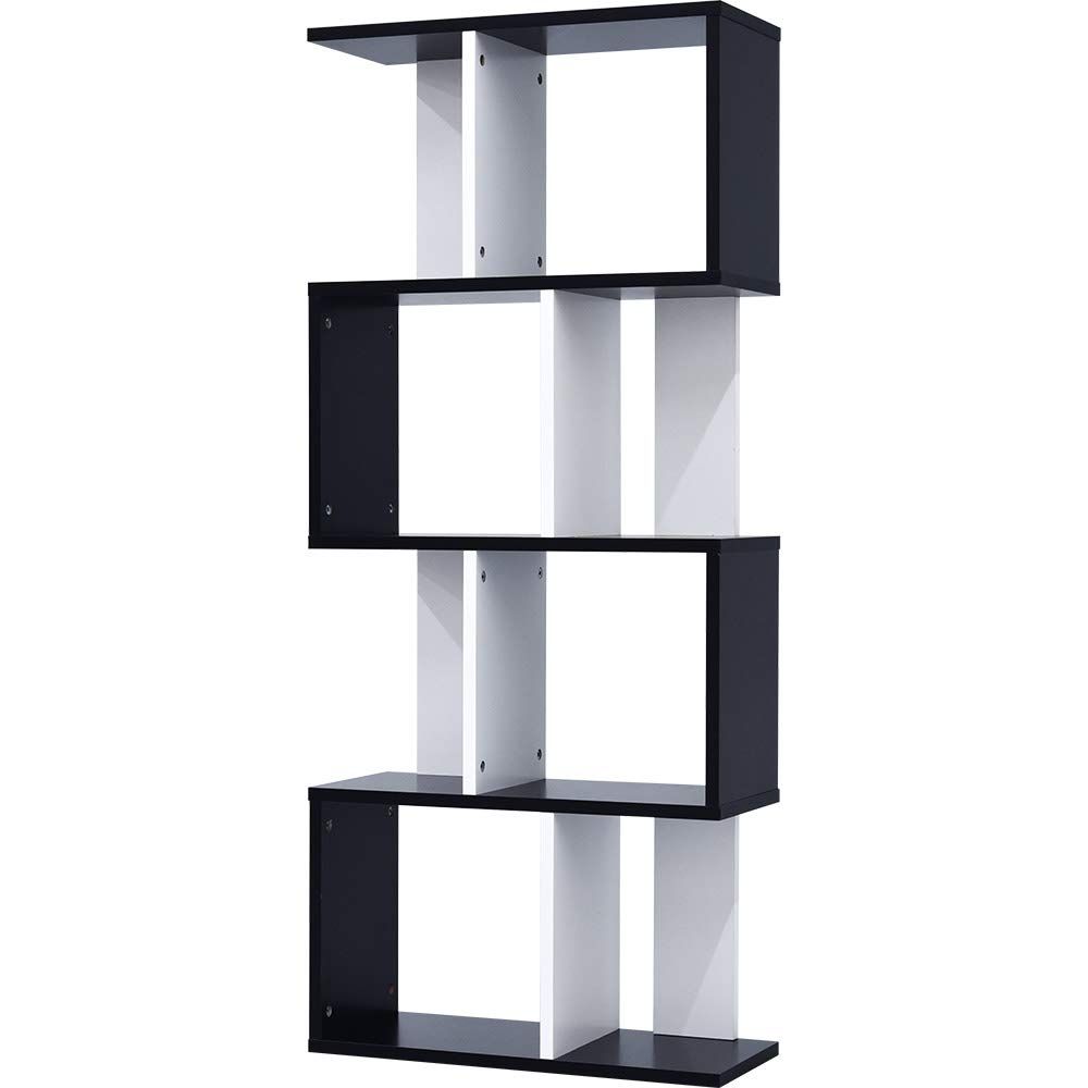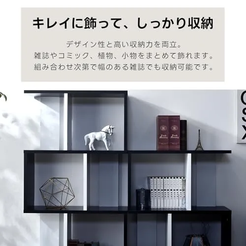 ワイエムワールド 本棚 収納ラック ディスプレイラック スリム 木製 S字 4段 幅59 奥行24 高さ138 ブラック ホワイト 00-167/