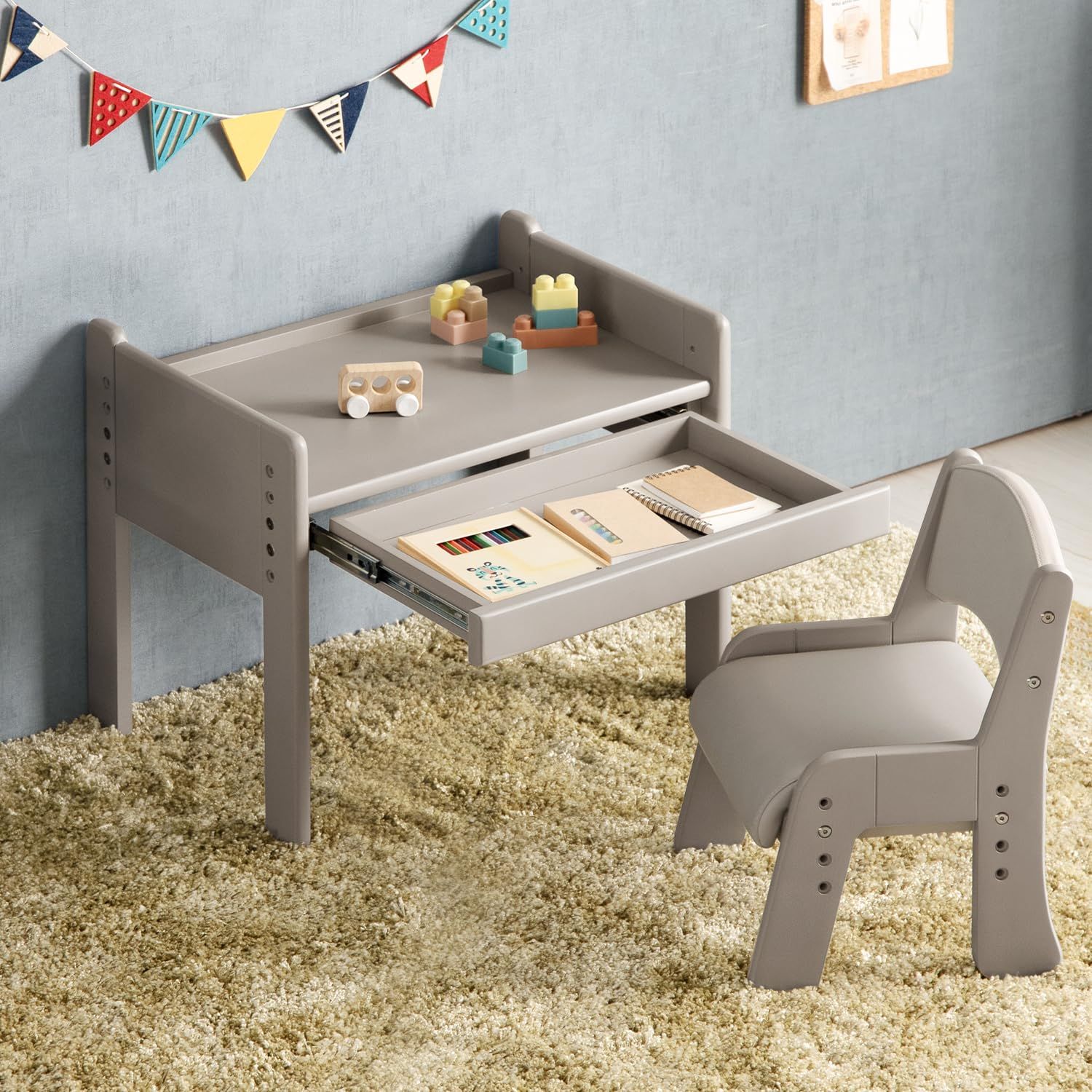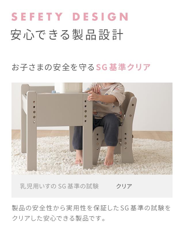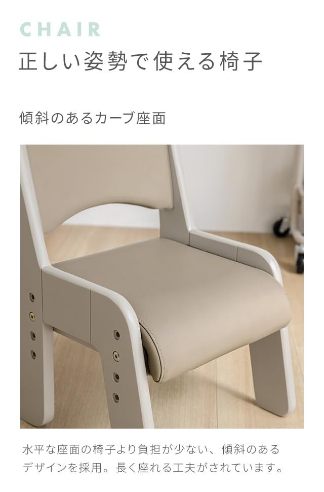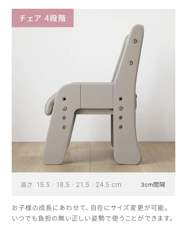 モダンデコ キッズデスク チェアセット キッズチェア 2点セット 1人掛け 子供用 高さ調整 4段 木製 (ウォームグレー)/