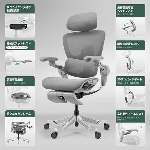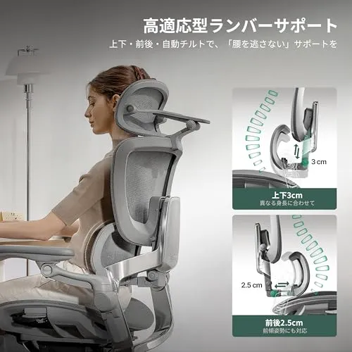 Hinomi H2 Pro オフィスチェア ゲーミングチェア 人間工学 椅子 メッシュ テレワーク 疲れない 前傾チルト2-in-1 ダイナミック背もたれ 高適応性ランバーサポート フルレンジアームレスト 143°リクライニング 折りたたみ (グレー)/