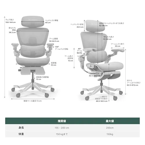 「あらゆる体型にフィット」:業界トップクラスの19箇所の調節機能により、脚部、背中、肩、首など、ほぼ身体全体に完全にカスタマイズ可能なフィット感を提供します。耐荷重は最大150まで対応します。