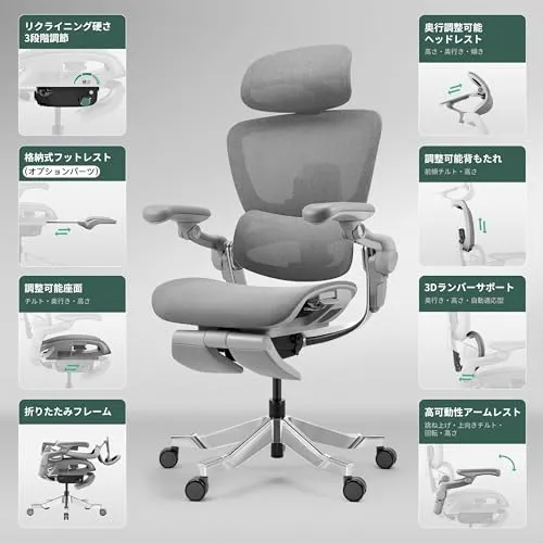 「あらゆる体型にフィット」:業界トップクラスの19箇所の調節機能により、脚部、背中、肩、首など、ほぼ身体全体に完全にカスタマイズ可能なフィット感を提供します。耐荷重は最大150まで対応します。