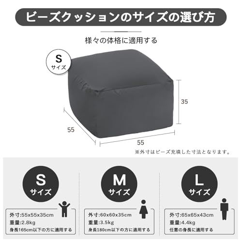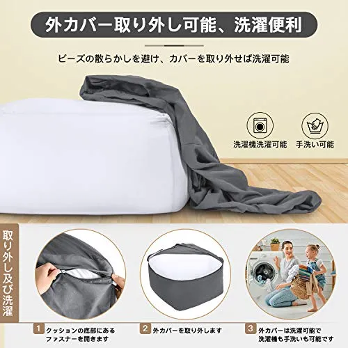 【心遣いのあるデザイン、取り外し可能な外カバー】:隠しファスナーは金属ジッパーが床を傷つけることが防止できます。中袋にはビーズ量の調整や補充できる二重のファスナーがついています。EPSビーズの漏れを防ぐだけでなく、EPSビーズを追加するための便利さも提供します。 外カバーが取り外しやすく、お手入れも簡単です。手洗い、洗濯機洗い可能で、高品質の生地は色あせしません。