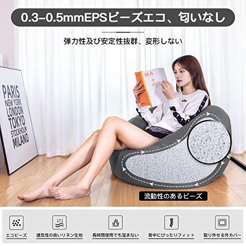 【自由にスタイルを作り、ゆったりと寛ぎます】:ビーズクッションはエコで健康的な直径0.3-0.5mmのEPSビーズで充填されています。極小のビーズは流動性と弾力性があります。座ると背中をしっかりと支え、体にピッタリフィットします。体をリラックスさせ、疲労を和らげることができます! 本を読んだり、テレビを見たり、パソコンで勤務したり、スマートフォンを弄ったり、寝転がったり、好きなように使えます。