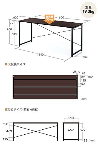 横幅160cm、奥行60cm、高さ70cmの デスク です。