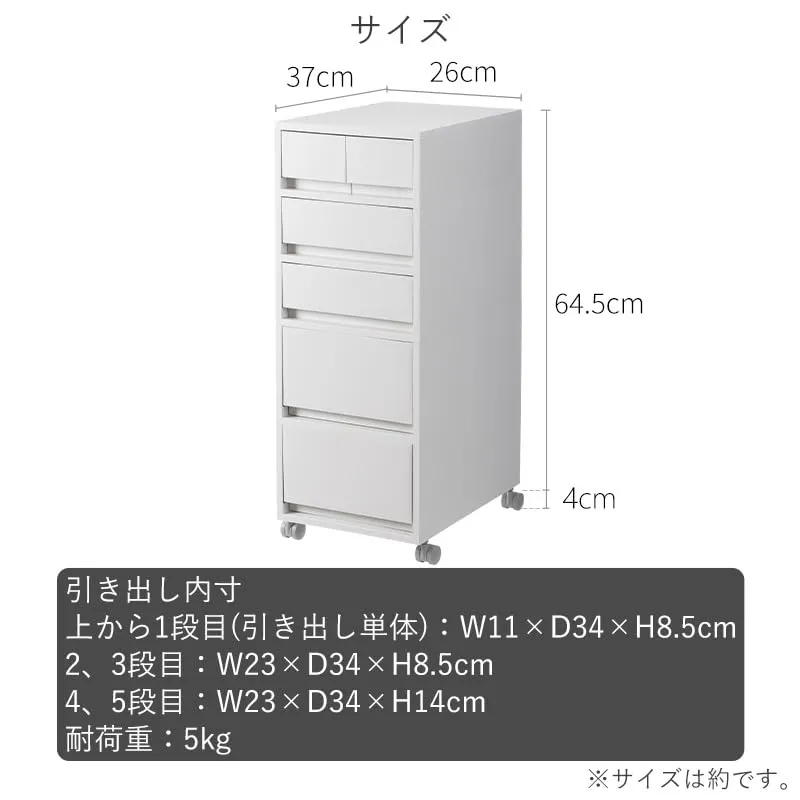霜山 5段 デスクワゴン キャビネット サイドワゴン サイド 引出しキャビネット キャスター付き 完成品 組み立て不要 デスク 書類 ファイル 収納用品 仕切り付き 小物収納 机 オフィス 棚 寝室 キッチン/