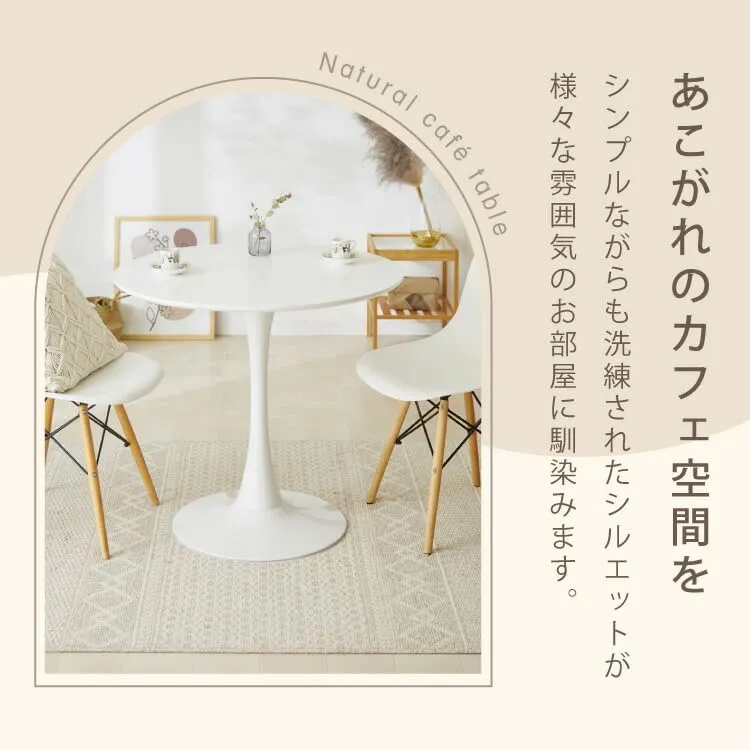 【カフェのような穏やかな暮らし Caf? style table】シンプルなフォルムが使いやすい、オシャレなラウンドテーブルです。いつもの暮らしの中に、カフェスペースのような穏やかな空間を作ります。 {あこがれのカフェ空間を}シンプルながらも洗練されたシルエットが様々な雰囲気のお部屋に馴染みます。 つや消し天板で上品な印象に:天板にはつや消し塗装を施しました。お部屋に合わせやすい、上品な素材感にこだわっています。 こなれた雰囲気のシングルレッグ:一本脚のスッキリとしたシルエットが、こなれた雰囲気を演出します。