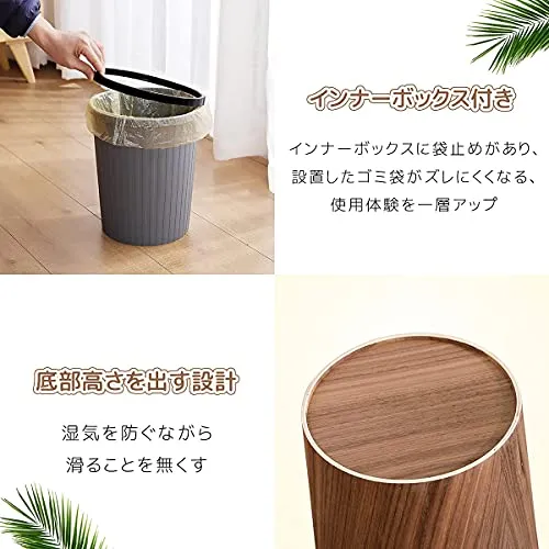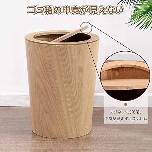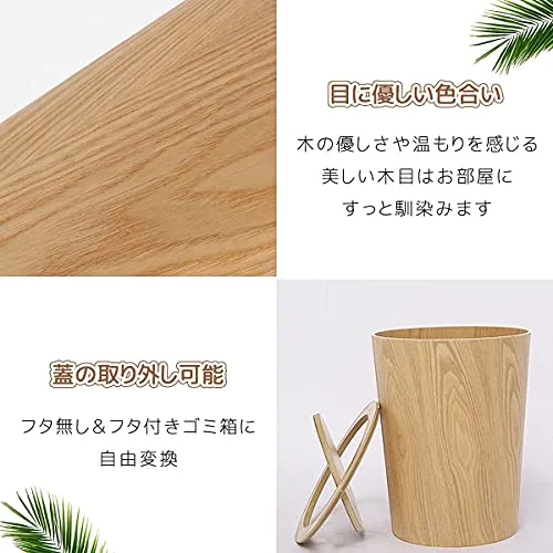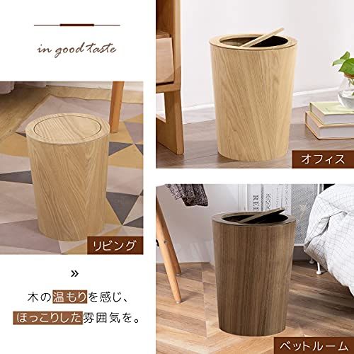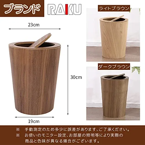 RAKU 木製ゴミ箱 ふた付き ダストボックス インナーボックス付き おしゃれ 12リットル キッチン リビングルーム トイレ 室内 洗面所用 大容量 丸型 2色 (ライトブラウン)/