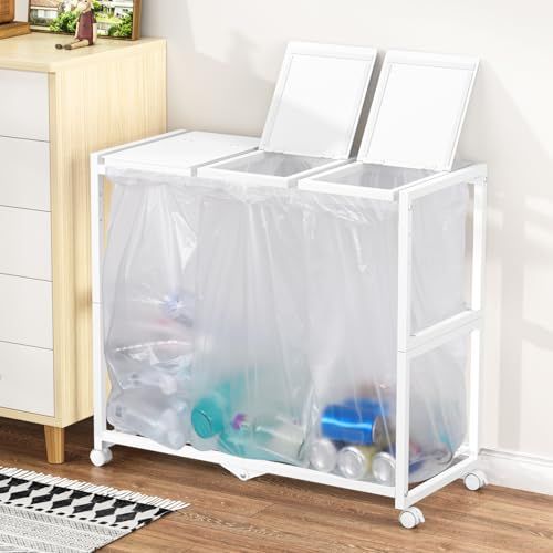 【1台で3分別できるゴミ箱】中身が見える3分別ゴミ袋ホルダーですので、瓶・缶・ペットボトル・プラスチックなどの資源ごみを分別することにぴったりする上、ゴミの量が一目でわかり、捨てるタイミングも計りやすくなります。何個のゴミ箱を置く必要がなく、1台でゴミを簡単に分別しながら捨てることかできます。商品仕様:キャスタータイプ組立後サイズ:約70*32.5*65cm アジャスタータイプ組立後サイズ:約70*32.5*61.5cm