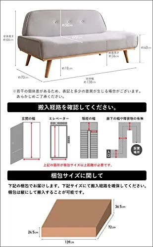 VENTOTA ソファー ソファー 2人掛け 二人がけソファー 2人がけ おしゃれ ローソファー 幅138cm 木製フレーム 北欧 カウチソファー コンパクト 1人暮らし 肘なし シンプル Cauto GY vo420912/