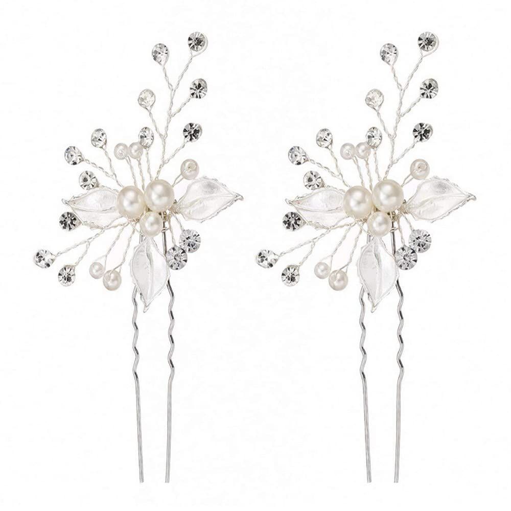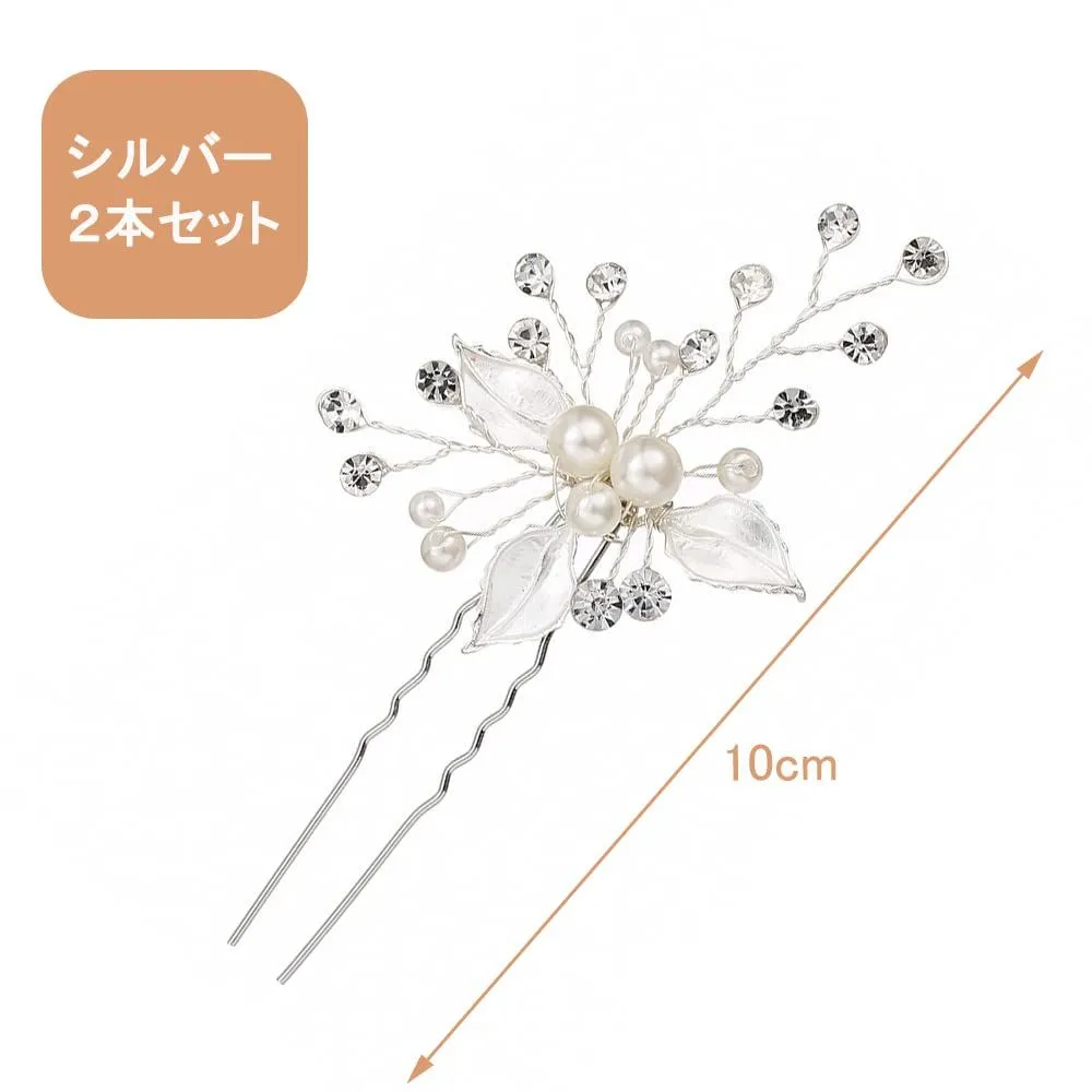 DFsucces ゴールドヘアピン 三つ葉 ヘアピン 結婚式 二次会 発表会 卒業会 パール 髪飾り (シルバー-2本セット)