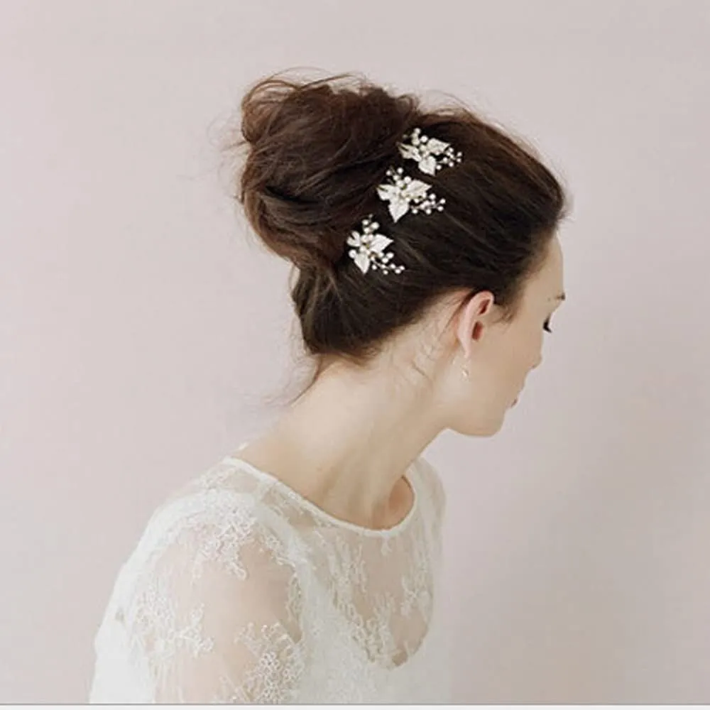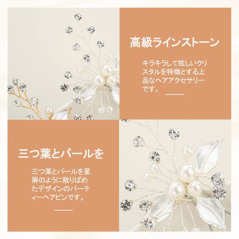 三つ葉 ヘアピン ゴールドヘアピン 結婚式 二次会 発表会 卒業会 DFsucces パール 髪飾り (シルバー-2本セット)