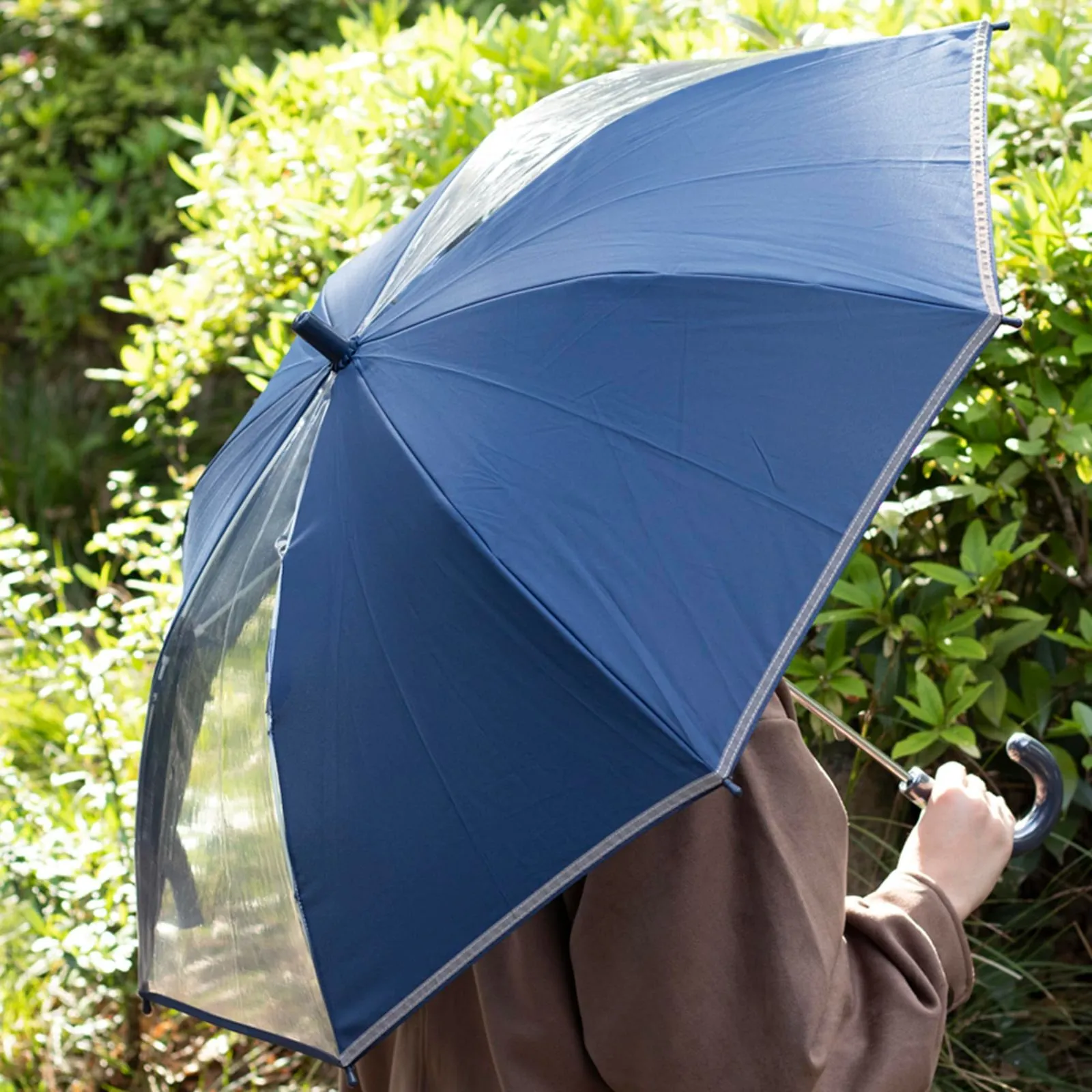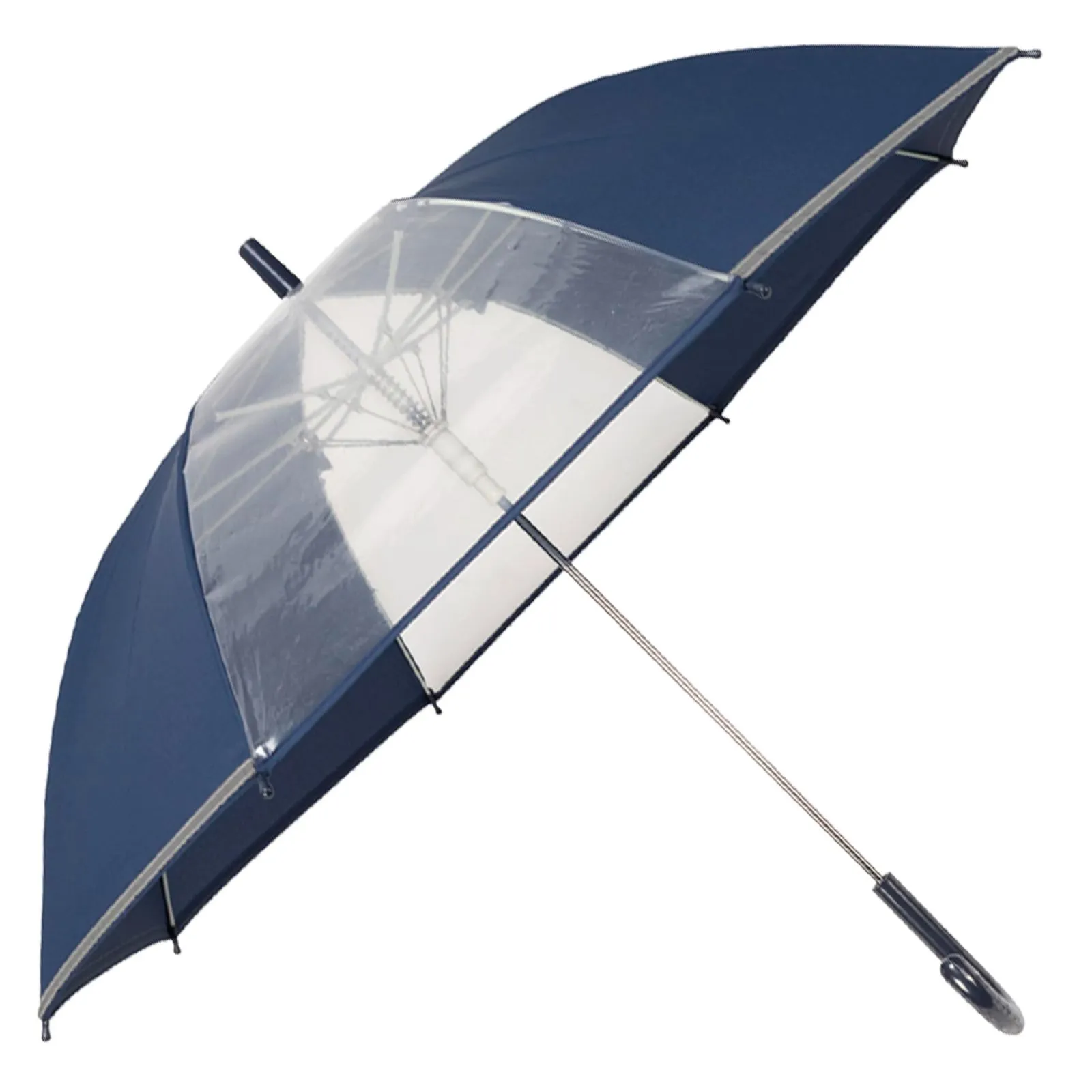 アスティ(Asty) 学童 耐風 無地 2駒透明 反射テープ付 ジャンプ傘 ネイビー 58cm ASS09JP58