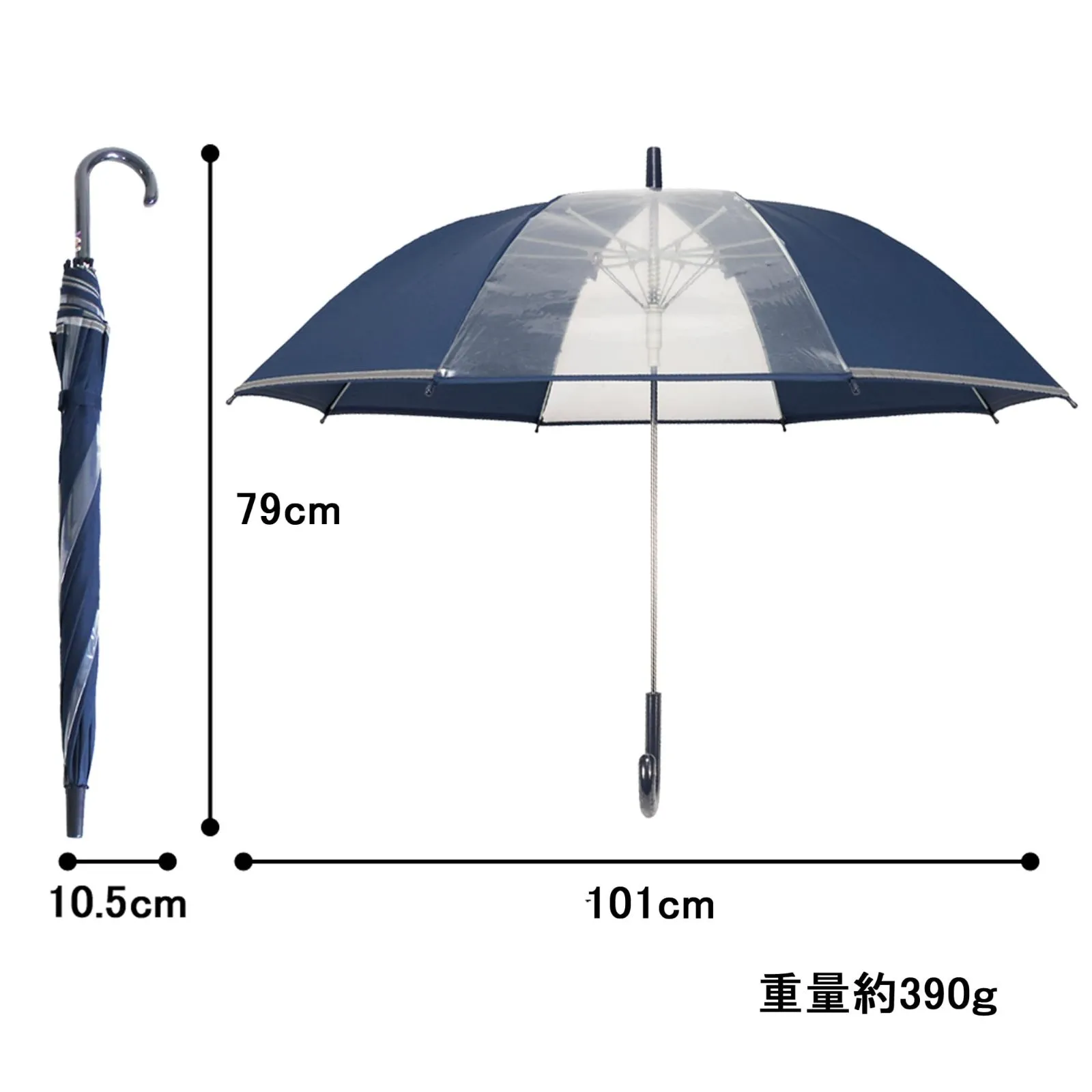 サイズ:約6×10.5×79cm 重量:約0.39kg 開いた時の傘の直径:101cm