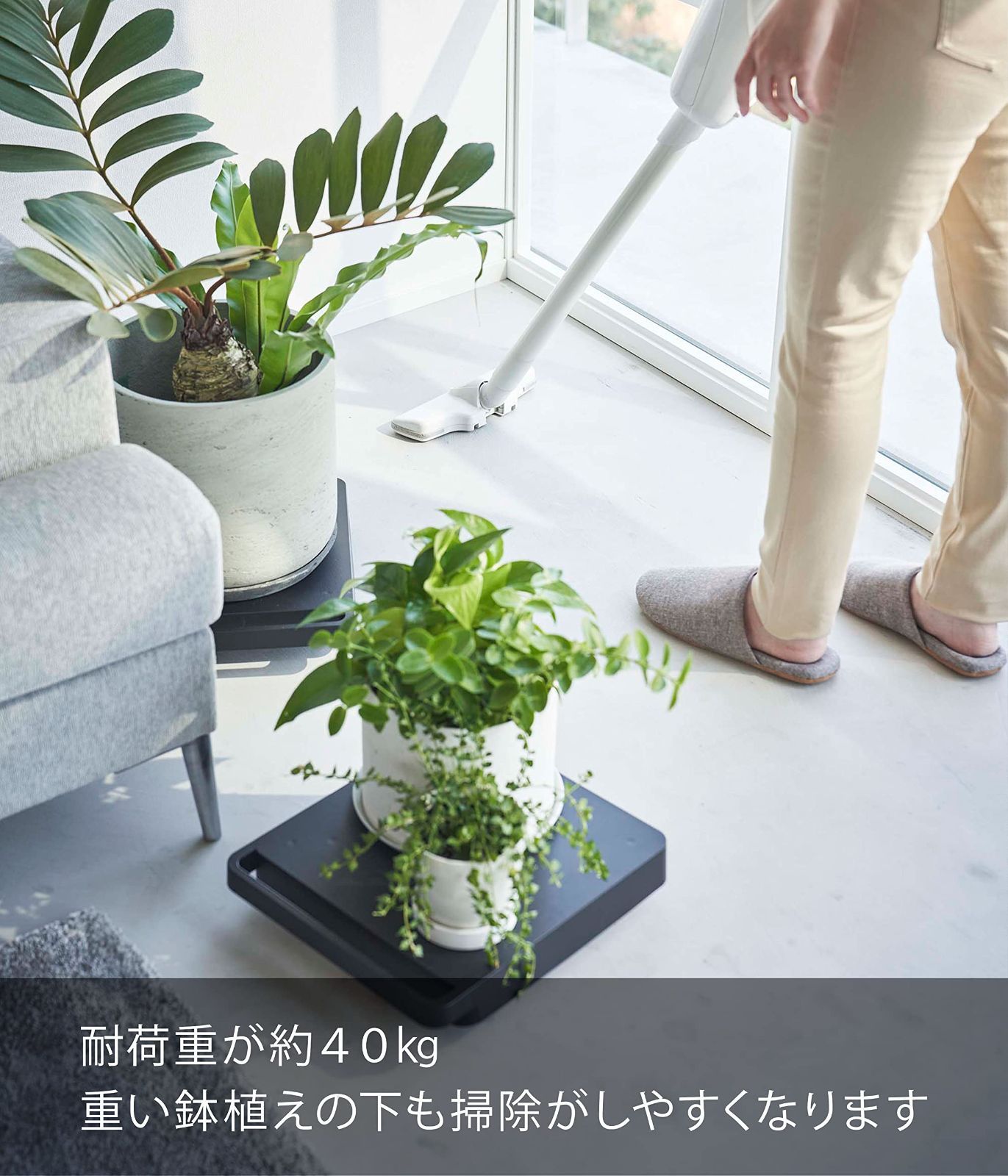 山崎実業(Yamazaki) 自立する台車 正方形 ブラック 約W28×D31×H6.6cm タワー tower キャスターが目立たない 平台車 小型 5456