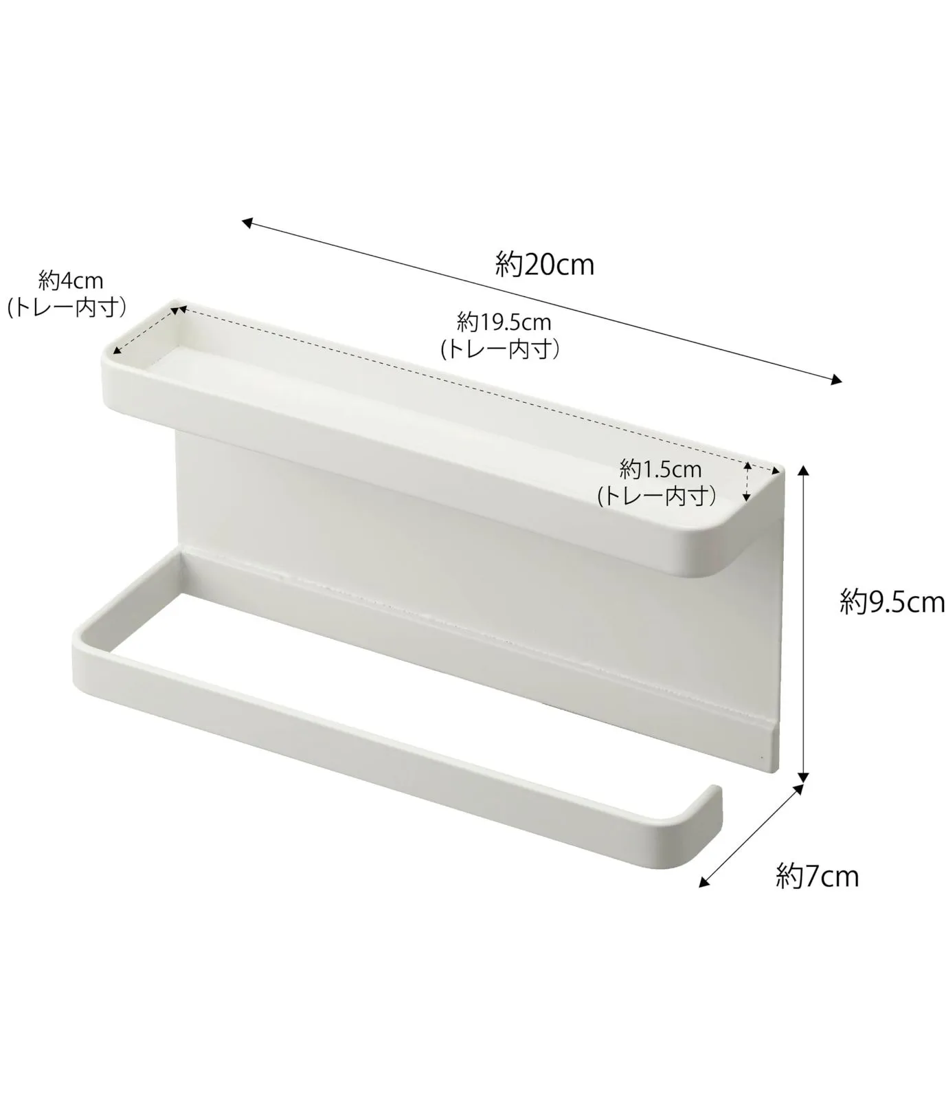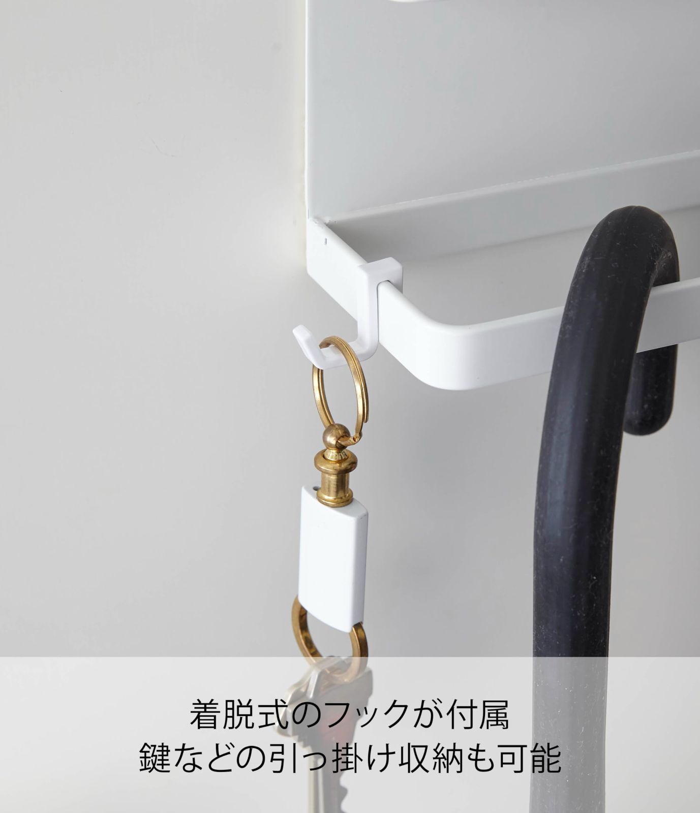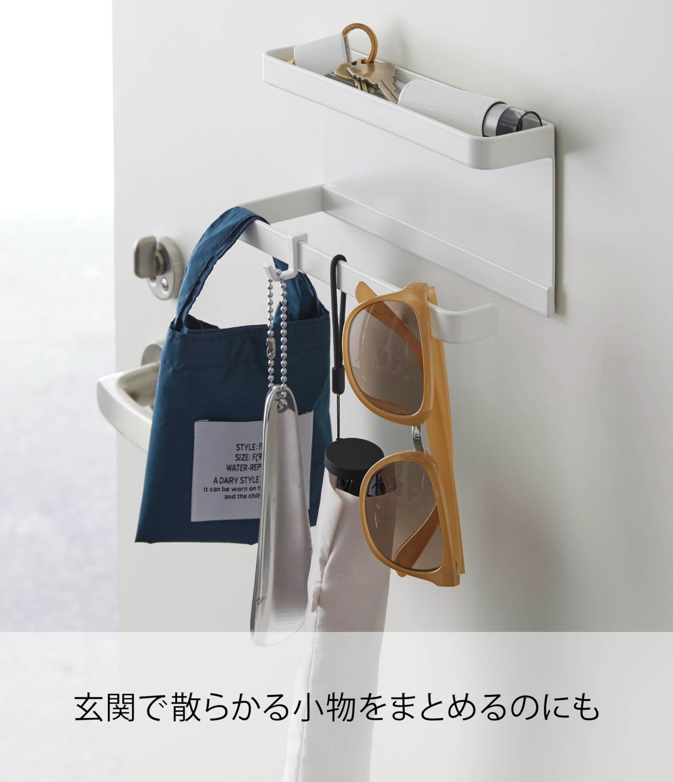 約W20XD7XH9.5cm スマート ホワイト 傘立て アンブレラホルダー 玄関扉収納 トレー付きマグネット フック付き 山崎実業(Yamazaki) 5041