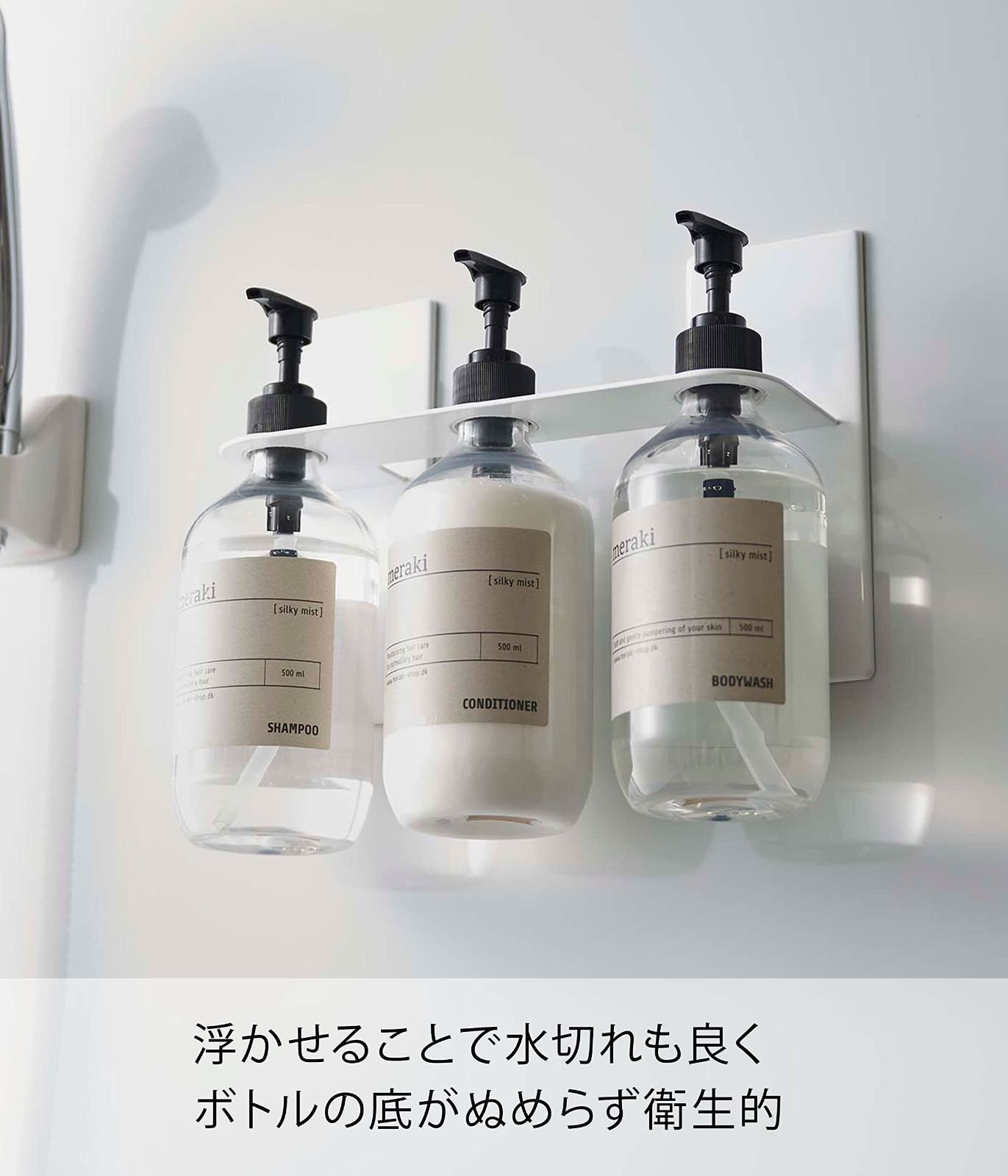 宙に浮かせるからボトルの底がぬめらず衛生的。