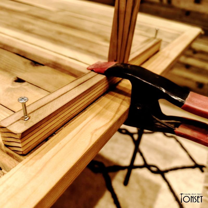 ■打っているビスを隠すためのダボ栓穴埋めはせずビスそのまま見せている。