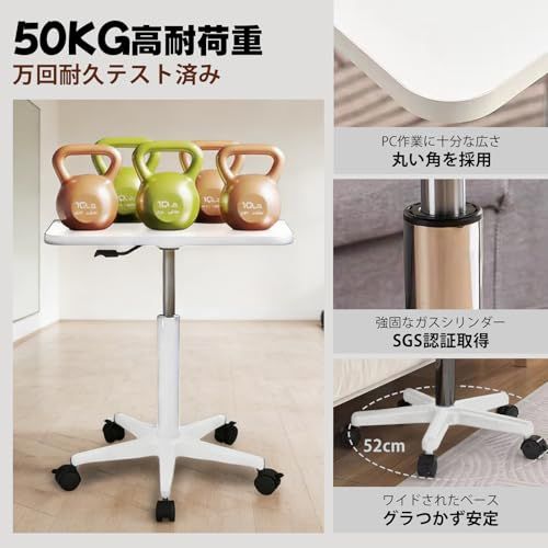 【小型の割には50kg強荷重】コンパクトなタイプですが、SGS国際検査を通過した高品質ガススプリングが装備され、耐荷重は50kgと!直径が52CMまでワイドされたベースも より一層安定感を支えます!優れた耐荷重能力でパソコンや周辺機器などデスクワークに必要なものをたっぷり置いても安定感抜群!正に機能美を尽くした昇降デスクです。