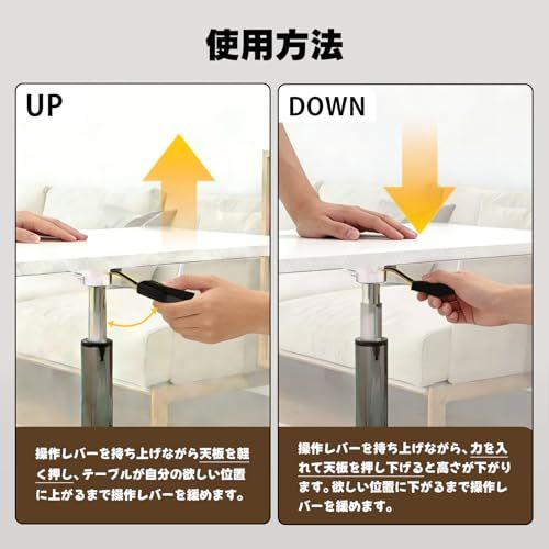 【使用方法】?UP:操作レバーを持ち上げながら天板を