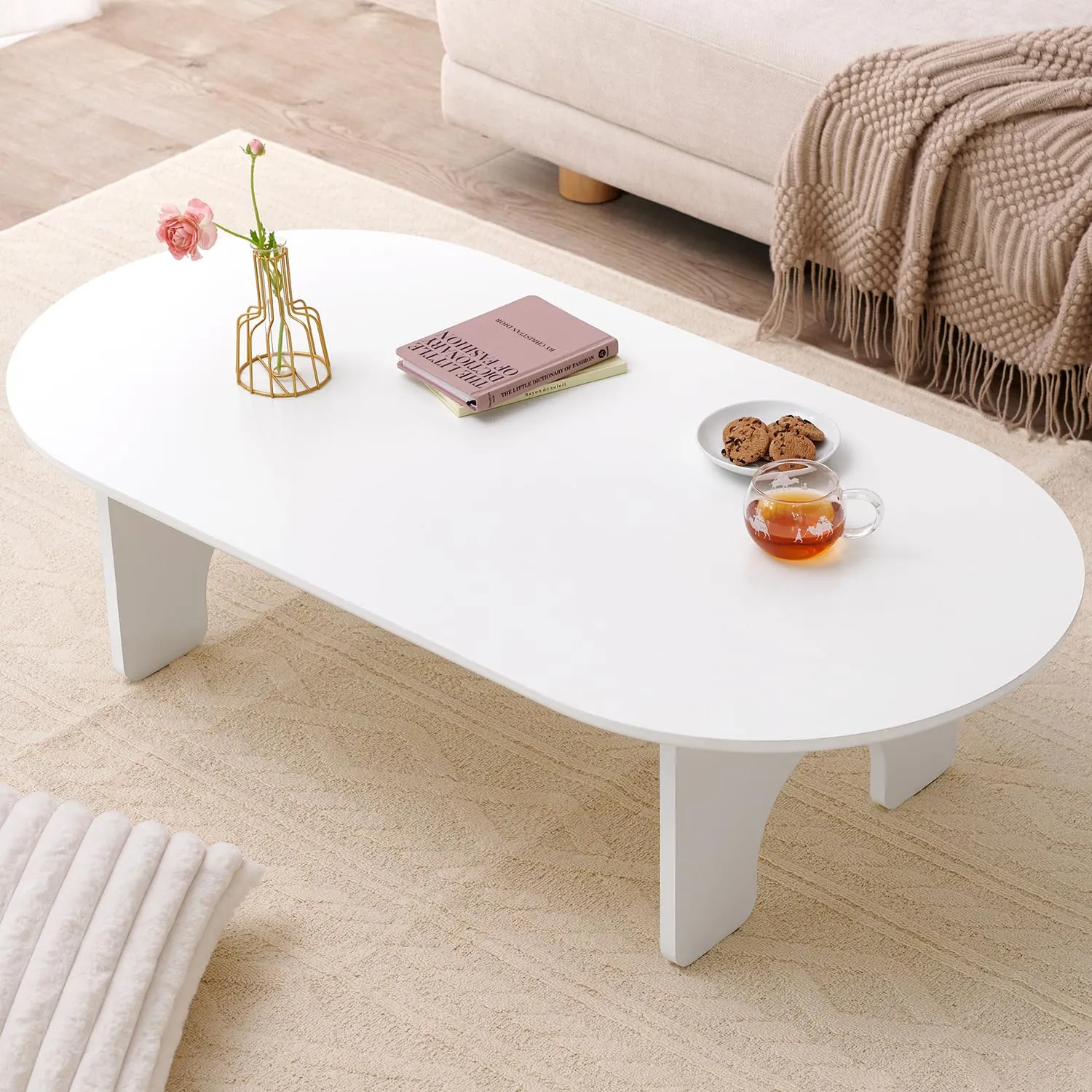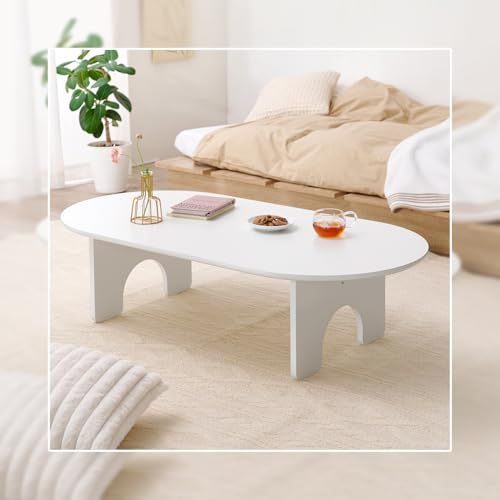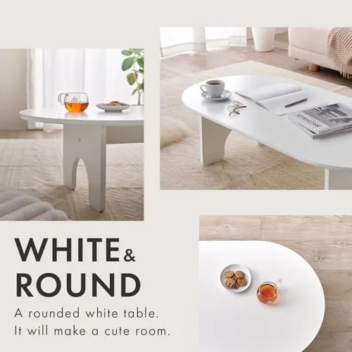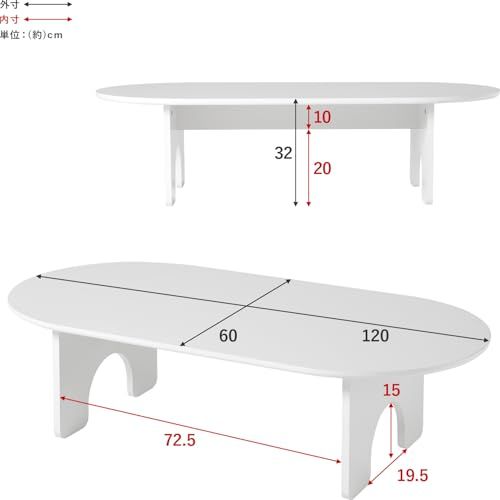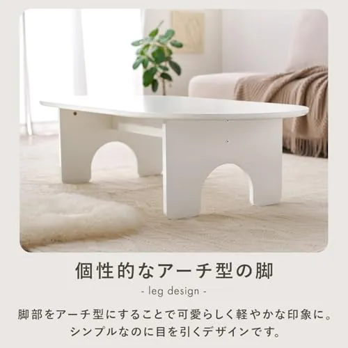 萩原 ローテーブル テーブル 楕円 大きめ 幅120 【 アーチ型 の かわいい 足もと 】シンプル メラミン樹脂 幅120 奥行60 高さ32 ホワイト MT-6929WH/
