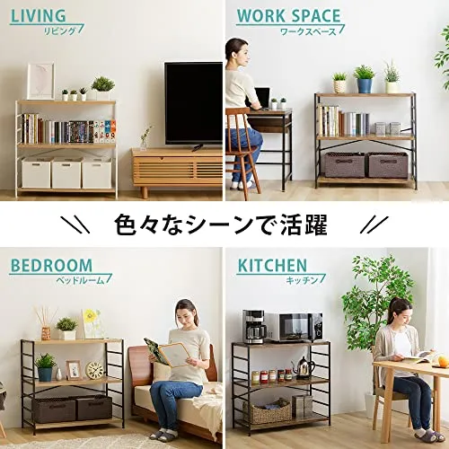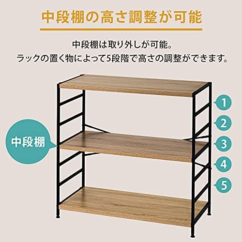 丈夫なスチールフレームに木製棚板のあたたかさをプラス、どんなテイストのお部屋にも合わせやすい3段ラックです。