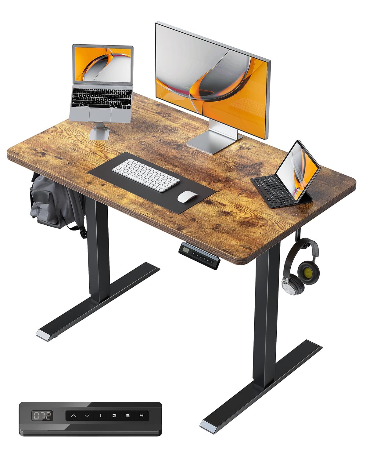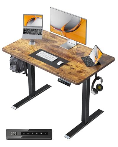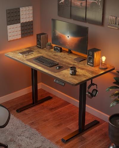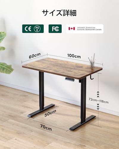 FEZIBO 電動 昇降デスク 一枚板 幅100cm オフィスワークテーブル スタンディングデスク ゲーミングデスク 高さメモリー機能 上下昇降 静音 収納フック付き 衝突検知 机 作業机 テレワーク ブラックフレーム/ブラウン天板【幅100 x 奥行き60/