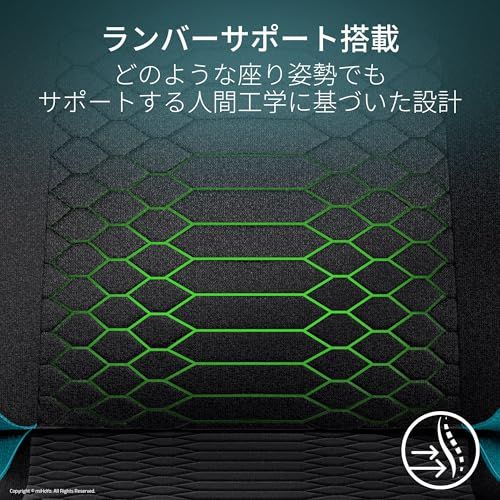 【ランバーサポート搭載 - どのような座り姿勢でもサポートする人間工学に基づいた設計】腰部をやさしくサポートするランバーアーチを搭載し、自然な座り姿勢を維持できるため、長時間座っていても疲れにくくします。