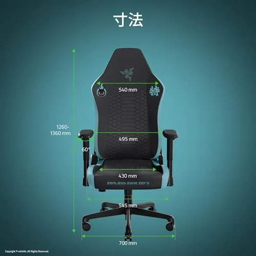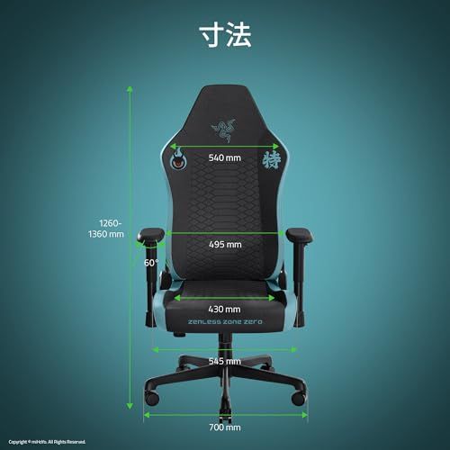 ゼンレスゾーンゼロ ゲーミングチェア Razer レイザー Iskur V2 X Zenless Zone Zero Edition 腰部をサポートするランバーサポート搭載 どのような座り姿勢でも圧力を分散 高密度フォームクッション 152度までリクライニン/