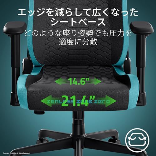 【エッジを減らして広くなったシートベース - どのような座り姿勢でも圧力を適度に分散】適度な圧力分散を実現するため、エッジを減らして身体が中央にくるように設計されています。545mm まで広くなったシートベースで、よりフレキシブルな座り心地をお楽しみください。