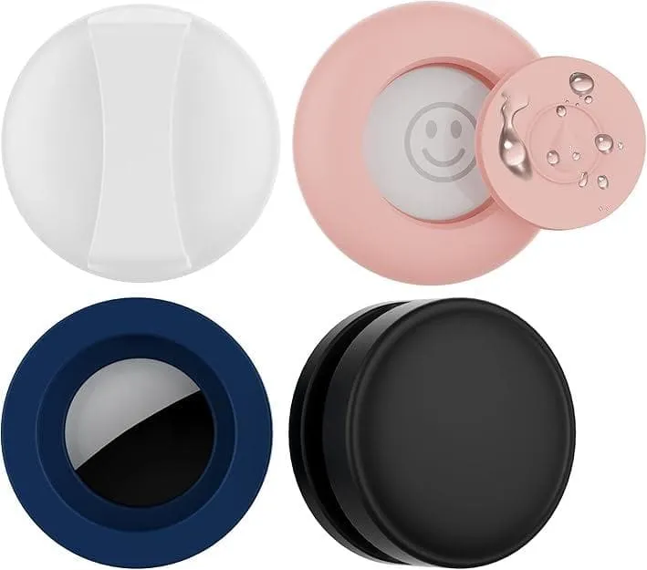 [SkyArmor] [4個パック] 子供用エアタグホルダー、隠し耐摩耗性シリコンケースカバー、幼児用子供靴アクセサリー(ブラック、ダークブルー、ピンク、ホワイト)