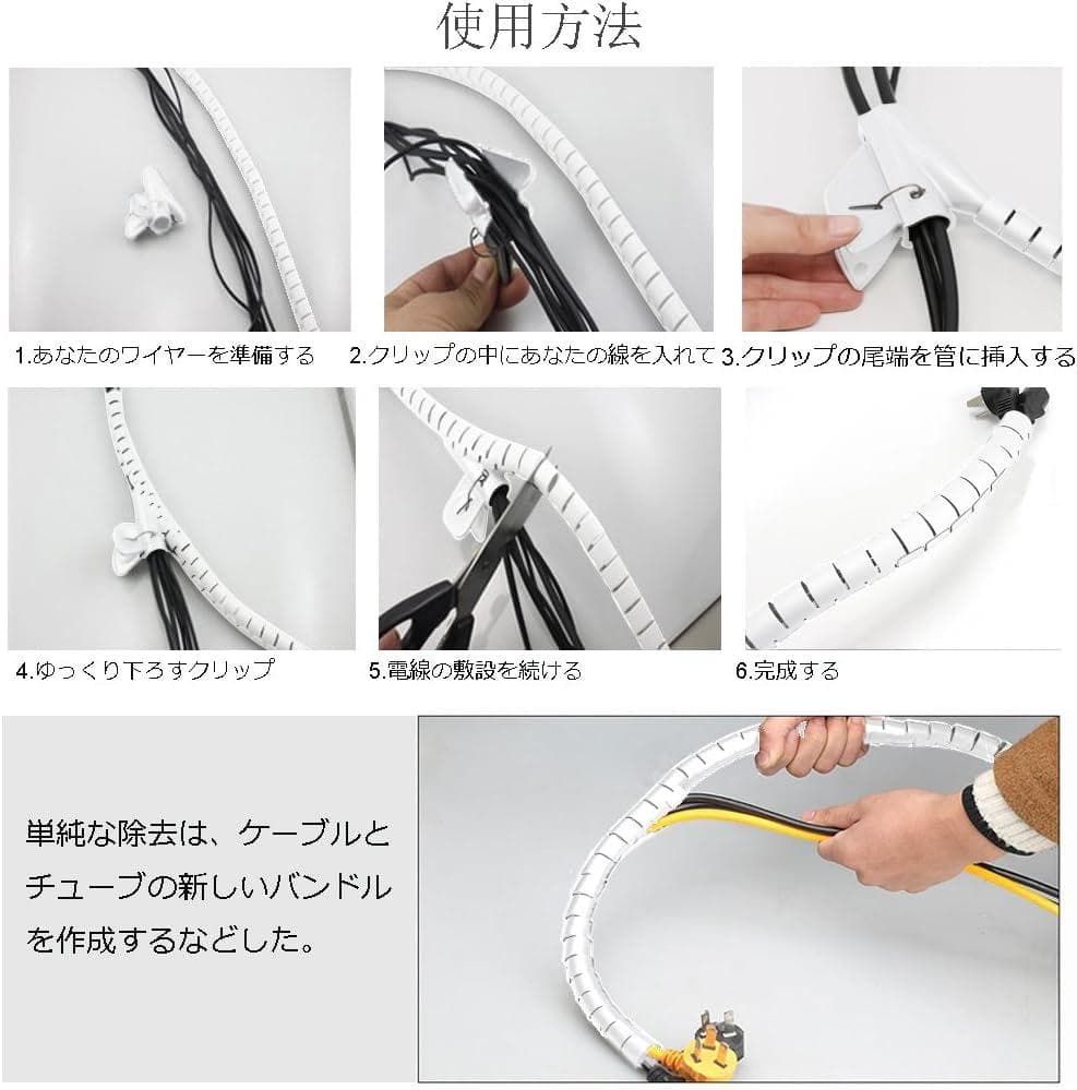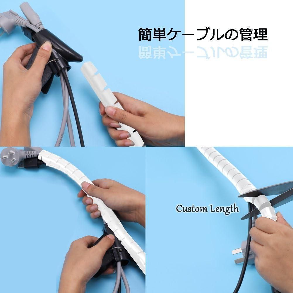 ケーブル まとめ 配線 隠し 便利な ケーブルカバー整理収納 チューブ スパイラルスリーブ、犬と猫によるコード噛み切り対策用、乱雑な電源・USB・LANケーブルなどがすっきりまと、 Fanoshon 内径22mm 長さ1.5m 繰り返し利用可能 調節できる家庭 会社 事務所 オフィス用、 パソコン・テレビ オフィス用 2パック(白)4枚無料ケーブルクリップ付き電線配線 固定 保護 汚れ防止