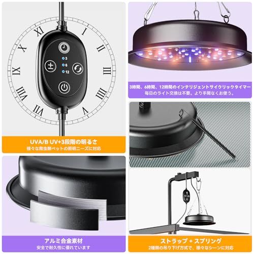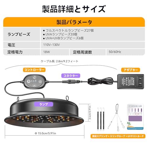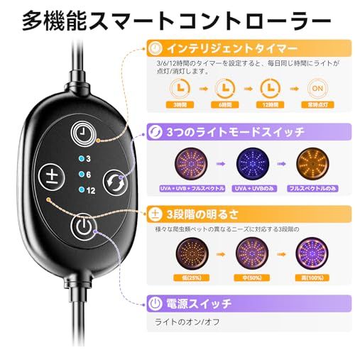 爬虫類用 紫外線ライト UVAUVB爬虫類ライト UVランプ タイマー・三段階調光付き UVテストカード付 トカゲ カメ ヤモリ 飼育用n