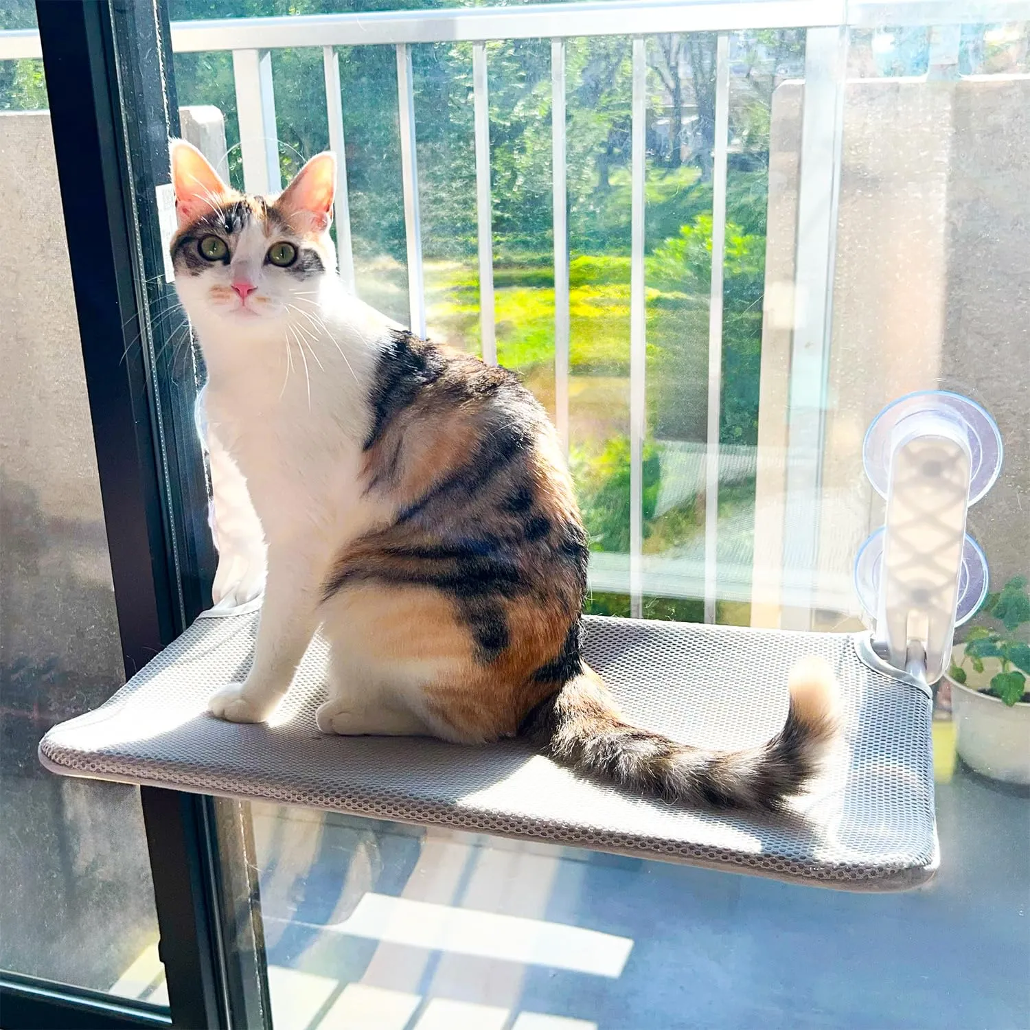 【2026年新モデル】Konshun公式オリジナル正規品 猫 窓用ハンモック 窓 ベッド 強力 大型 吸盤式 猫 ハンモック 窓 窓際見晴らし台 折畳み 上向きデザイン 専用両面テープ9個付 取り付け・移動が簡単 夏冬兼用 2種類の生地 両面で使用 洗濯可能n