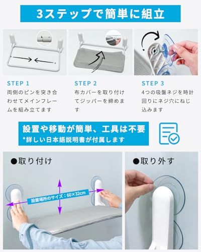 【公式オリジナル正規品 真の改良を実現した新製品】500人以上の購入者からのフィードバックを分析することで、従来品の問題点に対して、徹底的に最適化アップグレードを行った。? 改良されたPVC吸盤:超強力な吸着力で、滑らかな表面に安定して固定でき、長期間使用しても脱落しません、? ナイロンブラケット:力学解析により耐力構造を再設計し、サイズを大型化しました、耐久性と安定性が大幅に向上しました、? 高強度鉄パイプフレーム:丈夫で耐久性があり、変形しにくい。表面は錆びにくく、お手入れが簡単で、長期間使用しても劣化しません。