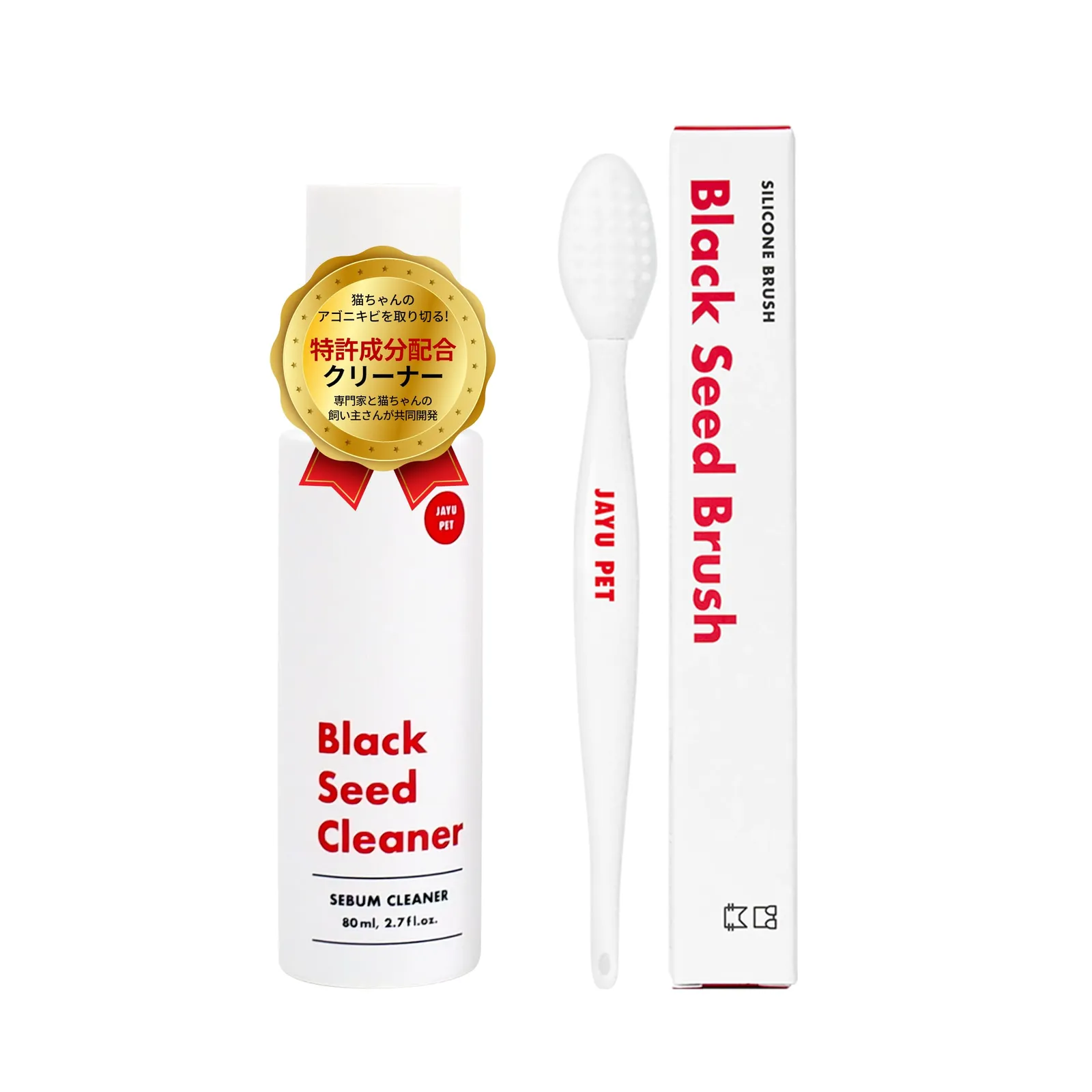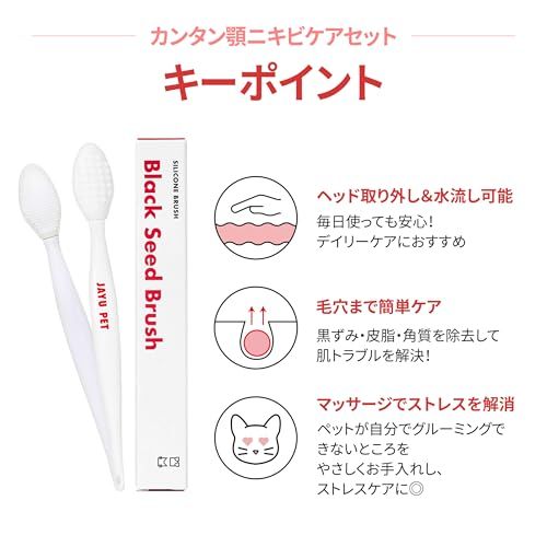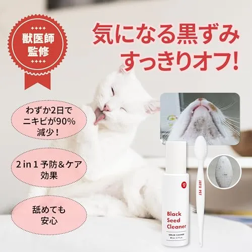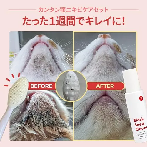 猫用ニキビケアキット 完全セット ? 80mlのブラックシードクリーナーと両面シリコンブラシがセットになり、あごニキビ・ブラックヘッド・余分な皮脂をやさしくケアして、健康的で清潔な肌へ導きます。