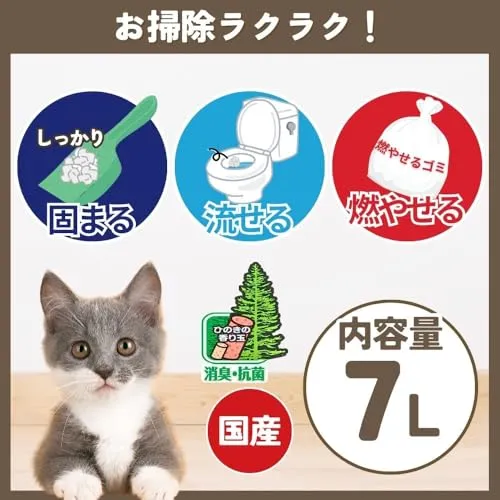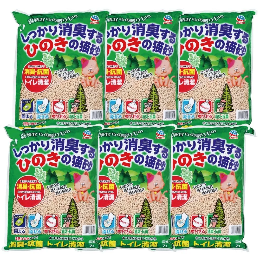 アース・ペット しっかり消臭するひのきの猫砂 7L×6個(ケース販売) トイレに流せる 木製猫砂 固まる 消臭 抗菌n