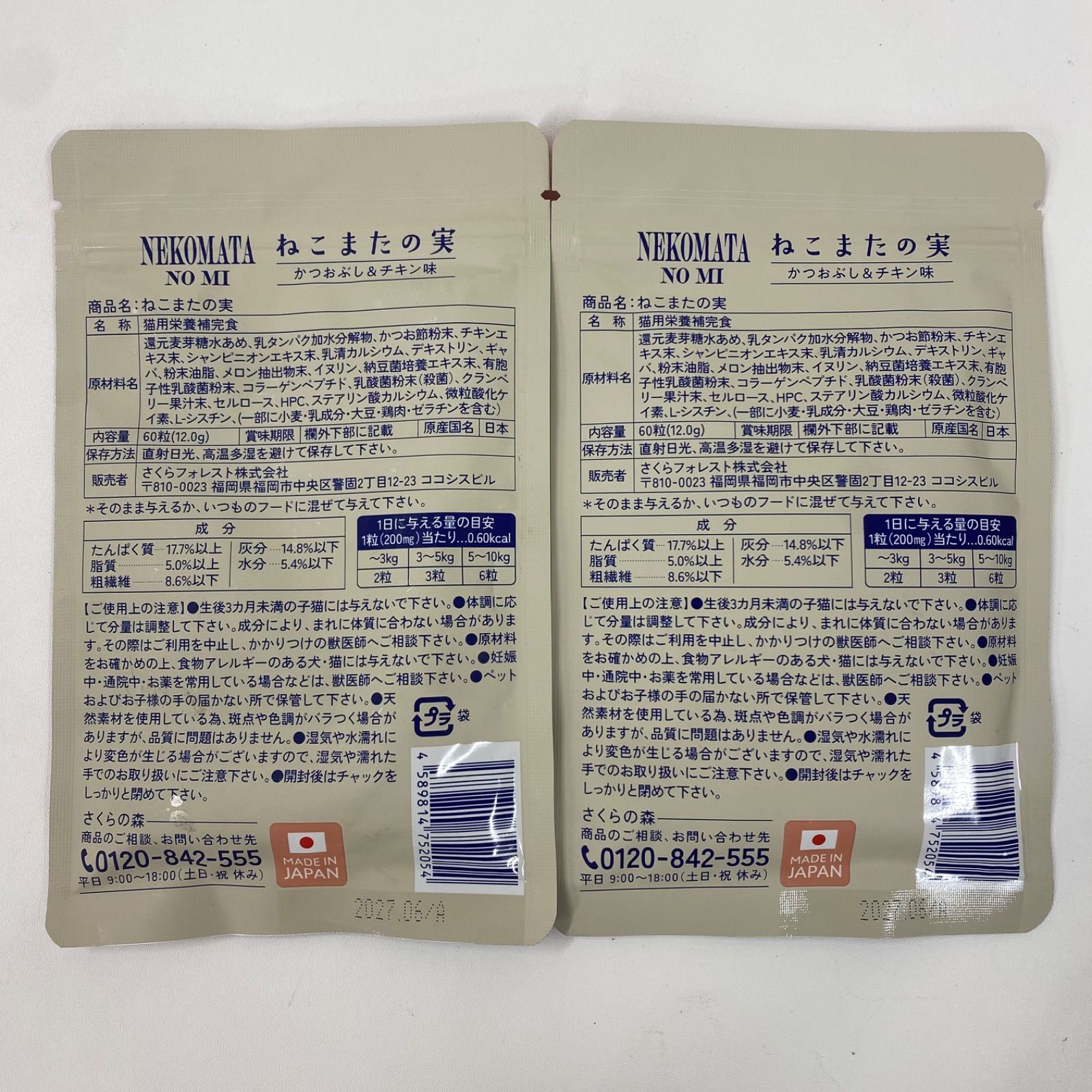 A9350 K さくらの森 ねこまたの実 かつおぶし&チキン味 60粒 計2点セット 2706