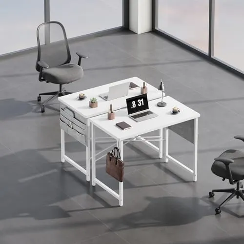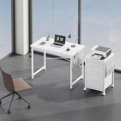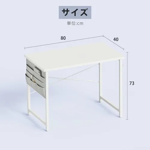 デスク 机 pcデスク 勉強机 幅80cm パソコンデスク 収納袋付き学習机 小さい つくえ 作業机 在宅 組立簡単 テレワーク 白い/