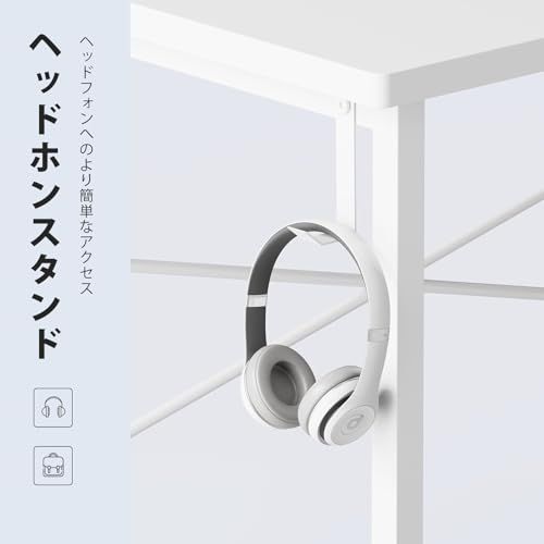 【大きな作業台と収納スペース】デスクの上は大きいので,パソコンと周辺機器を並べて置くことができ、手元がゆったり使える広さがあります。デスクは丈夫な収納袋とフックが付いておりますので、書類、カバン、ヘッドフォンなどの収納がとても便利になり、天板がすっきり片付けられます。