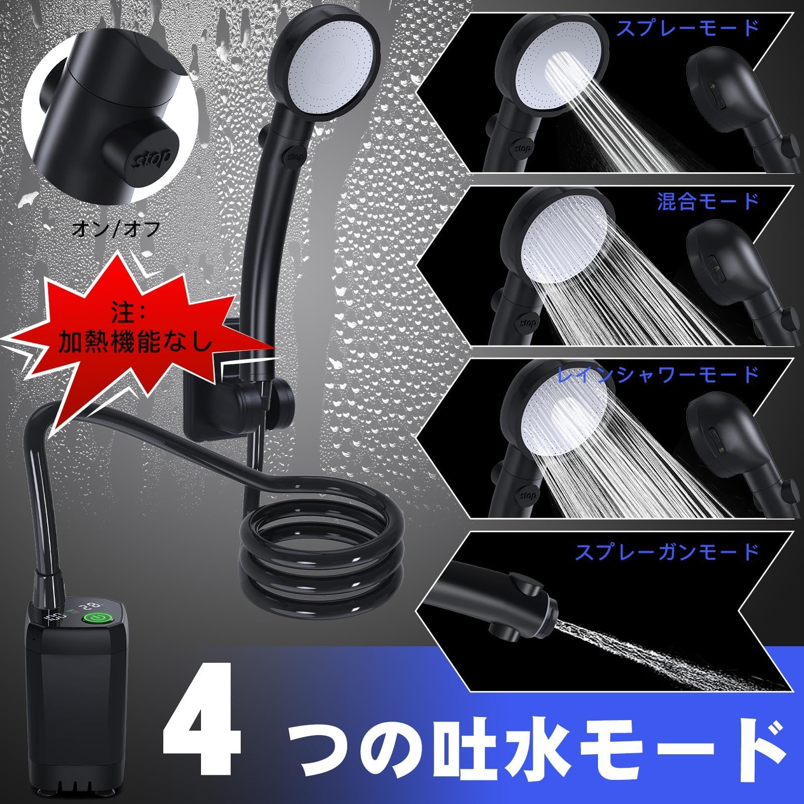 電動シャワー 水流量無段階調節 四つ出水モード 2Mホース 簡易シャワー 6000mAh】アウトドア デ ジタル画面付 キャンプシャワ ー 直射ヘッド&収納袋付き シャワー ポータブルシャワー【USB充電式 ポンプ キャンプ 海水浴 サーフィン 旅行 ペットシ